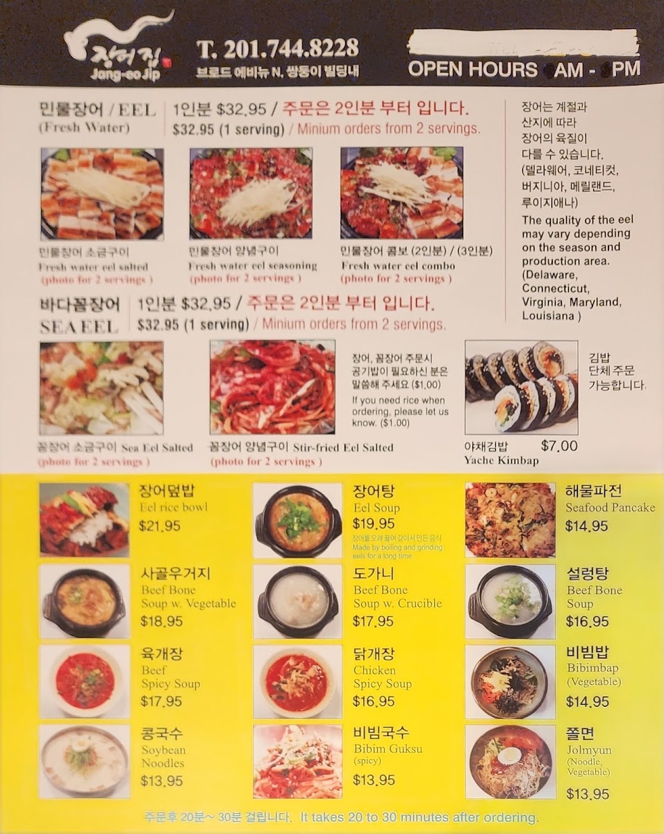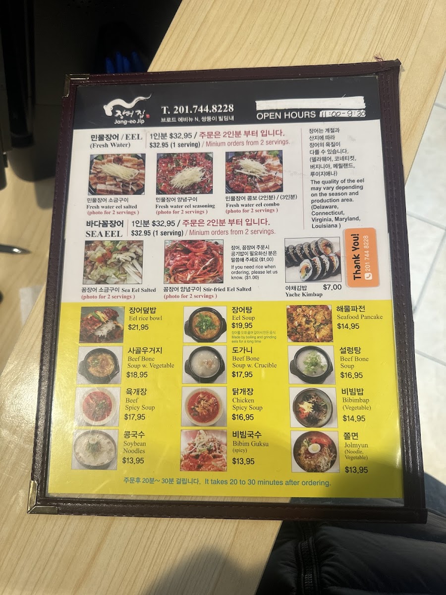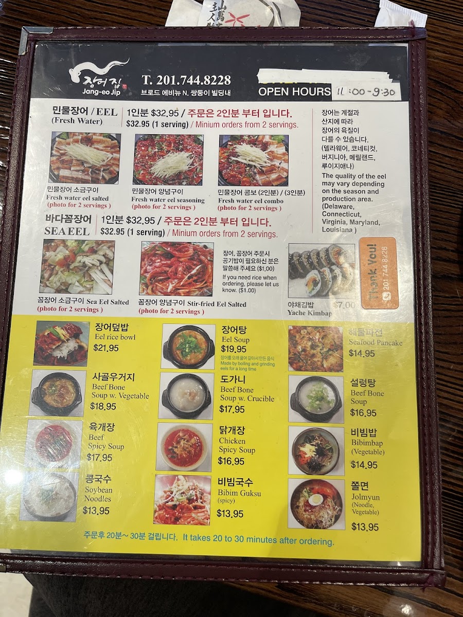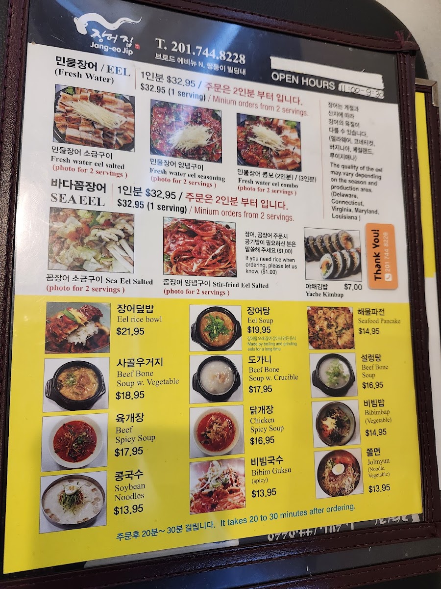 Jang-Eo Jip (장어집) Menu has the kind of spread that makes you pause for a moment before diving in, especially if you’re into comforting Korean flavors with a bit of flair. Tucked along 118 Broad Ave N5 in Palisades Park, the place is known for grilled eel, and the menu leans right into that specialty with options that feel both hearty and straightforward. As you look through the dishes, you’ll notice how everything centers on fresh ingredients and clean, satisfying flavors, whether you’re going for a classic grilled portion or something a little richer and more seasoned.